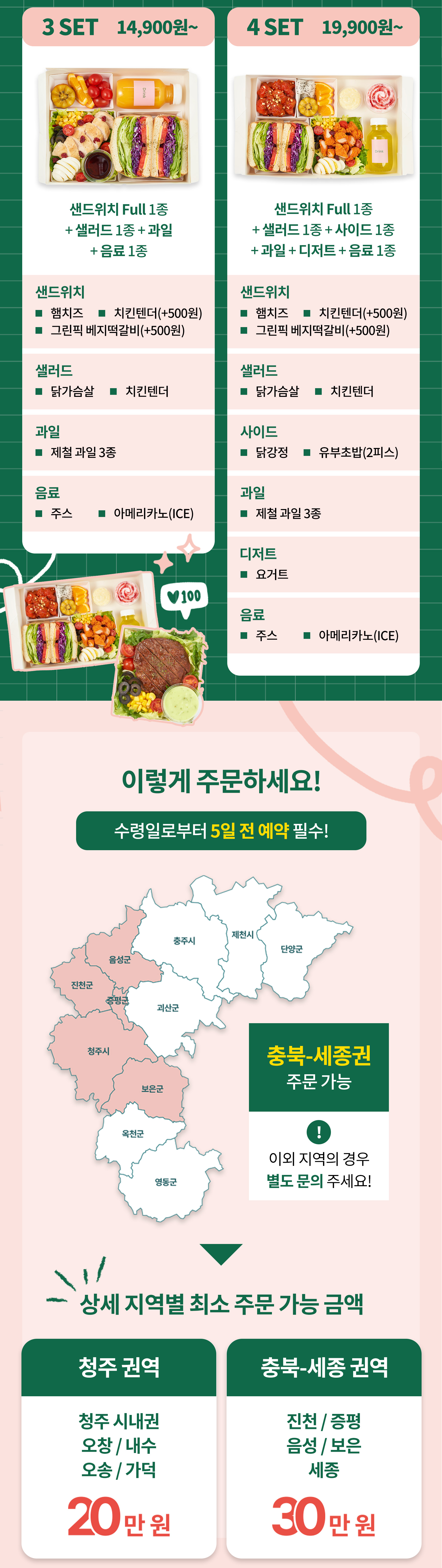 런치박스 3SET [샌드위치 Full 1종 /샐러드 1종 / 과일 / 음료 1종]