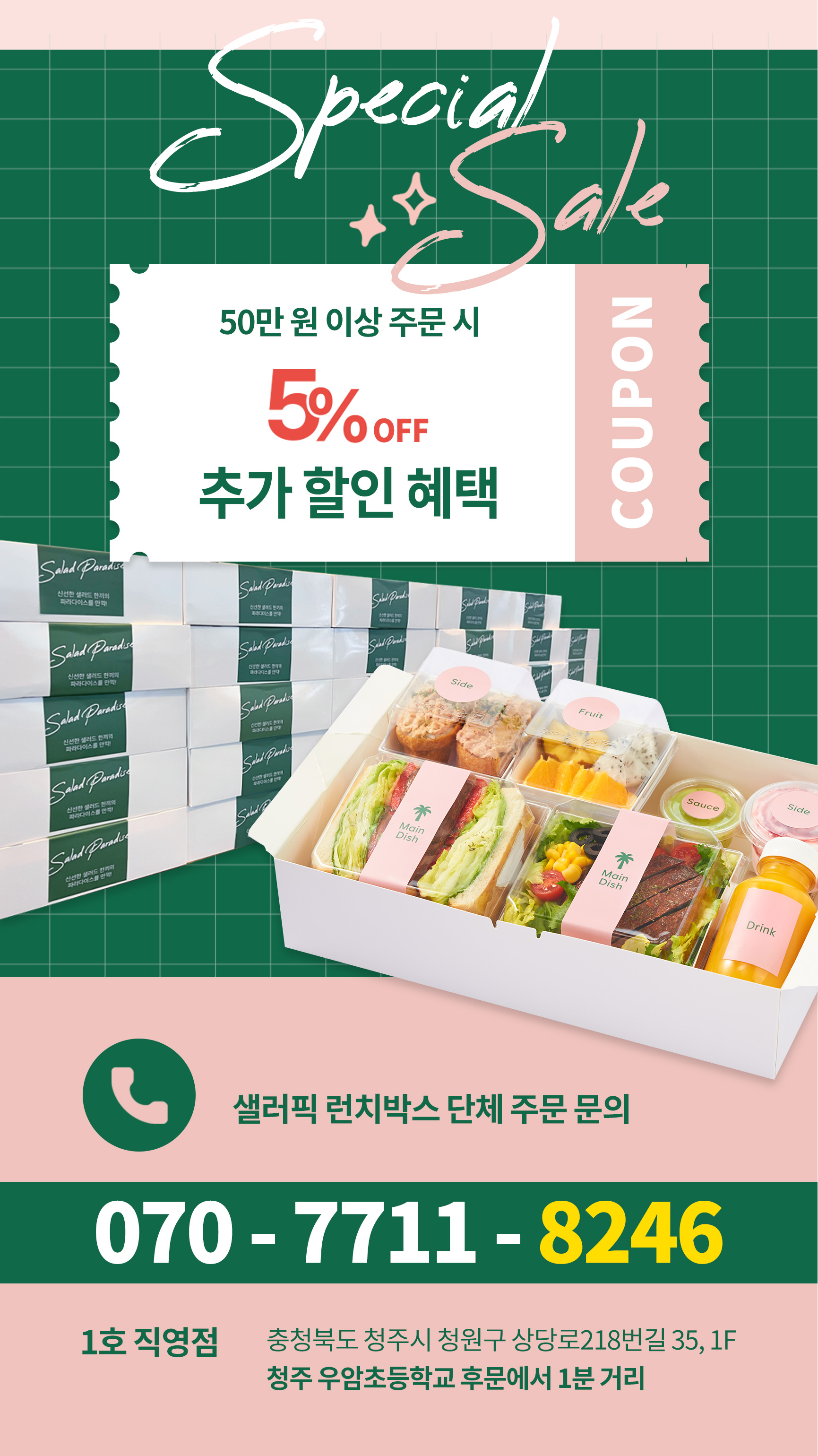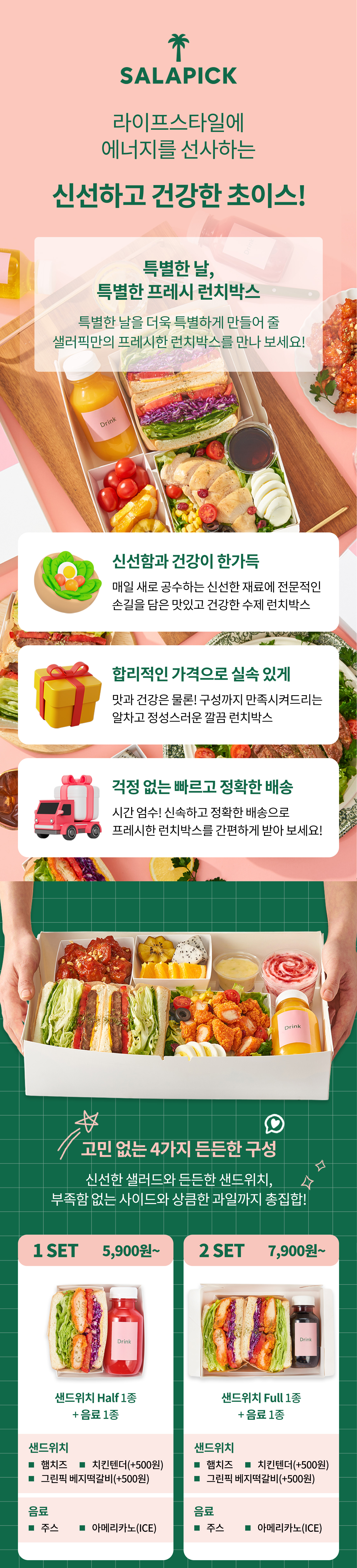 런치박스 4SET [샌드위치 Full 1종 /샐러드 1종 / 사이드 1종 / 과일 / 디저트 / 음료 1종]